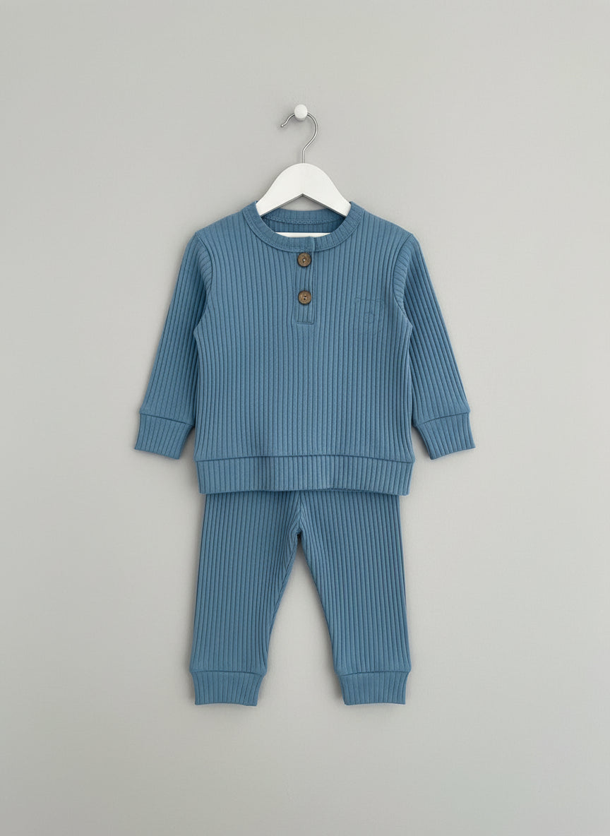 Crafted from premium organic cotton, this ribbed lounge set delivers understated comfort with a refined aesthetic. The textured ribbed fabric provides gentle stretch and breathability, making it ideal for relaxed days at home or casual outings.