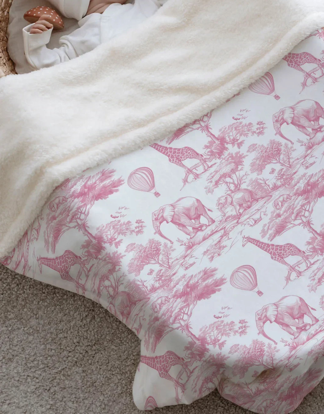 • Load image into Gallery viewer, Pink Toile de Jouy Safari Baby Blanket
