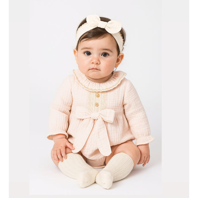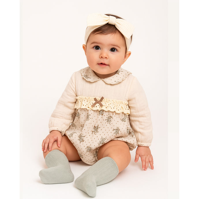 Beige Organic Cotton Baby Girls 2 Piece Set