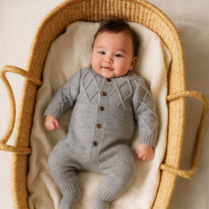 Grey Knitted Baby Onesie